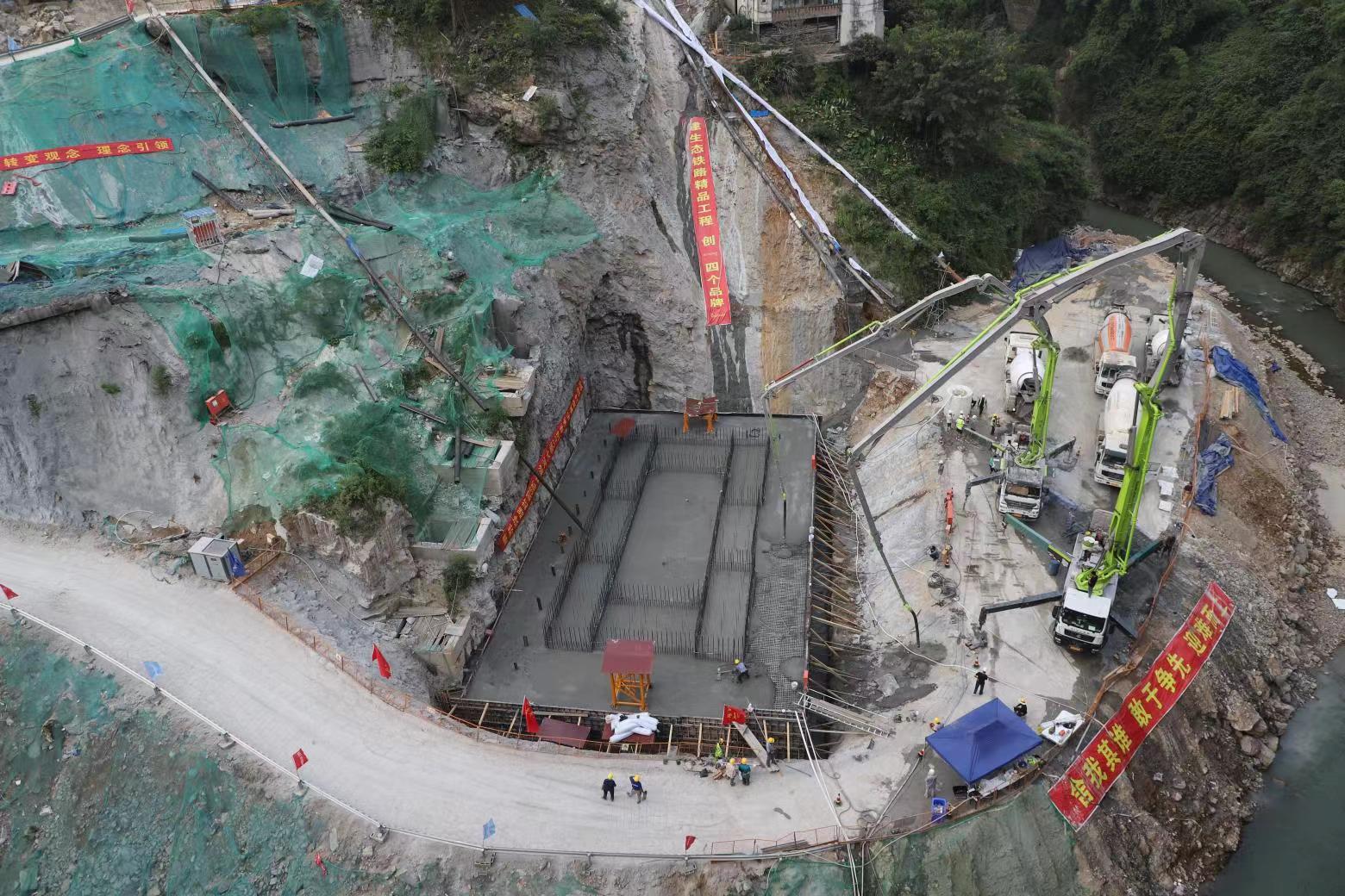重黔铁路长途河双线大桥主墩承台混凝土顺利浇筑完成